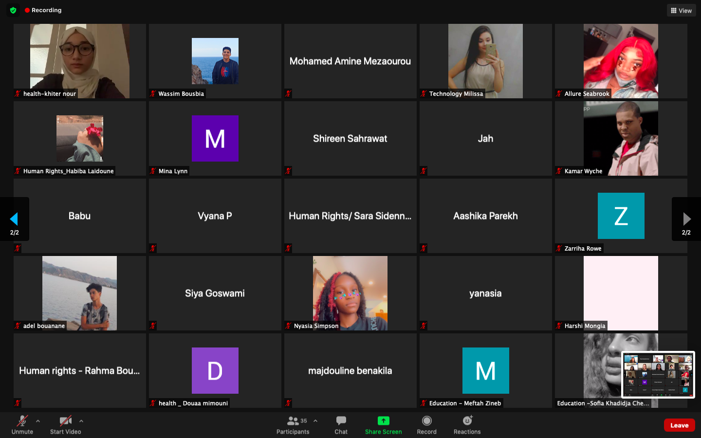 A virtual exchange for girls from Newark, Algeria, and Brazil, interested in becoming global citizens. Students were able to engage in cultural exchange (which is not always accessible to everyone). Participants were educated on important issues like gender inequity and its effects in different countries, as well as strides taken by people around the world to combat this problem. The main purpose was to observe how the same topic (gender equity) is different around the world and introduce the girls to different people/cultures.